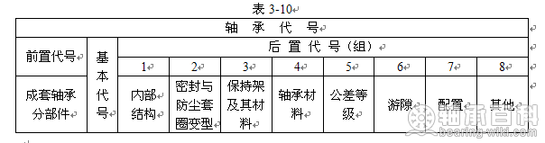 前置、后置代号是轴承在结构形状、尺寸、公差、技术要求等有改变时,在其基本代号左右增加的补充代号,其排列按表3-10。